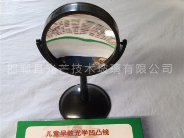 帶底座凹透鏡 直徑:10厘米 焦距:負(fù)300mm 幼兒園小朋友 或者中小學(xué)生認(rèn)識(shí)凹透鏡的特點(diǎn) 學(xué)習(xí)凹透鏡光學(xué)原理的的器材 尺寸大也時(shí)候教師教學(xué)演示用教具 知識(shí)拓展閱讀: 凸透鏡與凹透鏡可以從以下幾個(gè)方面加以區(qū)別:外形特征、對(duì)光線的作用、成像特點(diǎn)及用途等。具體方法如下: 方法一:用手摸,鏡子的中央部分比邊緣厚的是凸透鏡,鏡子的中央部分比邊緣薄的是凹透鏡。 方法二:隔著鏡子觀察距鏡子較近的書上的字,有放大作用的是凸透鏡;字變小的是凹透鏡。 方法三:隔著鏡子觀察距鏡子較近的書上的字,移動(dòng)鏡子,若發(fā)現(xiàn)像的移動(dòng)方向總是與鏡子的移動(dòng)方向相同,則該鏡子是凹透鏡;若發(fā)現(xiàn)像的移動(dòng)方向總是與鏡子的移動(dòng)方向相反,則該鏡子是凸透鏡。 方法四:隔著鏡子觀察窗外的物體,若能看到上下左右都顛倒的像,這種鏡子是凸透鏡;若看到像是正立的,這種鏡子是凹透鏡。 方法五:將點(diǎn)燃的蠟燭放在離透鏡適當(dāng)距離處,在另一側(cè)光屏上能得到倒立實(shí)像的是凸透鏡;無(wú)論怎樣調(diào)節(jié),在另一側(cè)光屏上不能得到像的是凹透鏡。 方法六:讓鏡子正對(duì)太陽(yáng)光照射,在鏡子的另一側(cè)放一張與透鏡平行的白色卡片紙,耐心調(diào)節(jié)鏡子與紙之間的距離,能得到一個(gè)小亮點(diǎn)的是凸透鏡;始終不能獲得小亮點(diǎn)的是凹透鏡。 方法七:觀察陽(yáng)光通過(guò)了兩副眼鏡在地面上形成的光斑,若形成光斑的中間比四周明亮,則鏡子是凸透鏡;若形成光斑的中間比四周暗,則鏡子是凹透鏡。 方法八:近視眼鏡,是用凹透鏡做成的。老花鏡,是用凸透鏡做成的。 說(shuō)明:辨別凸透鏡與凹透鏡有好多方法,哪種方法好,要視具體情況而定。例如,如果待辨別透鏡的中央與邊緣的厚薄差異不明顯,就不能用“摸”的方法(況且精密光學(xué)儀器是不允許直接用手去摸的);在有太陽(yáng)光與沒有太陽(yáng)光的場(chǎng)合,所選的方法也不同??傊?,一種好方法,應(yīng)該簡(jiǎn)便、易行、有效。它是隨場(chǎng)合變化而變化的,不宜一概而論。 技巧:當(dāng)你想要判別兩件事物的相同和不同之處時(shí),就需要用比較與對(duì)比的方法。比較就是找出事物的相似性,即共同特征。對(duì)比是找出事物的不同點(diǎn)。用這種方法來(lái)分析事物,能幫助你發(fā)現(xiàn)一些平時(shí)容易忽略的細(xì)節(jié)。